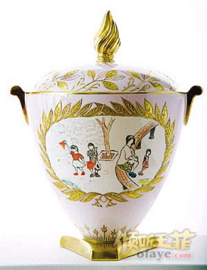2009年度嫣然天使基金慈善晚宴现场拍卖所需艺术品已基本到位,其中,最吸引眼球的拍品,无疑就是由两位“潜力艺术家”窦靖童、李嫣联手设计的Wedgwood-Trophy Vase(玮致活-胜利之瓶)的精致骨瓷。窦靖童、李嫣为Trophy Vase所创作的这一设计,正面取材一家人融洽相处的画面,表现出小孩眼中的温馨家庭氛围和每个人都渴望得到的关爱,背面则是嫣然天使基金的LOGO。设计图案由Wedgwood的杰出工匠手绘到Trophy Vase花瓶上。