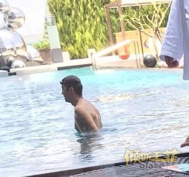 李亚鹏 [微博]也没闲着,有网友直击他在台北一酒店泳池游泳,还在沙滩椅上享受日光浴,身旁不见与