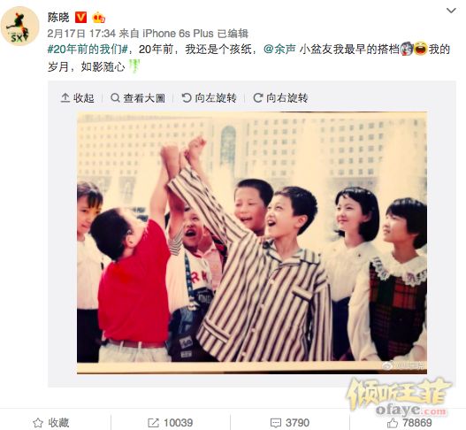 就在昨天陈晓也接过那姐的岁月话题“20年前的我们”,因为晒去了自己20年前第一次拍戏的照片,他也跟着