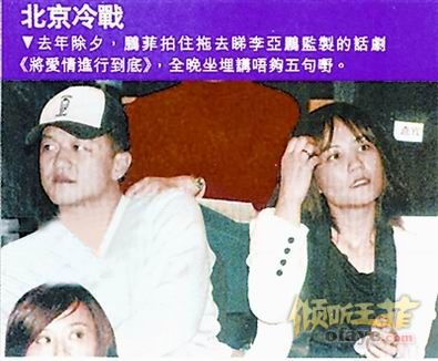 李亚鹏陷财务困境 王菲复出救婚姻?一场金融海啸,李亚鹏经营的酒吧生意陷入困境,盛传每月要拿六位数字出来填洞。李亚鹏为钱伤脑筋之际,老婆王菲不幸流产亦令一直想再追个儿子的他愁上加愁,愁在王菲高龄追仔要冒极大风险,变相李家继后香灯无望,令“鹏菲”五年夫妻情进一步受考验。