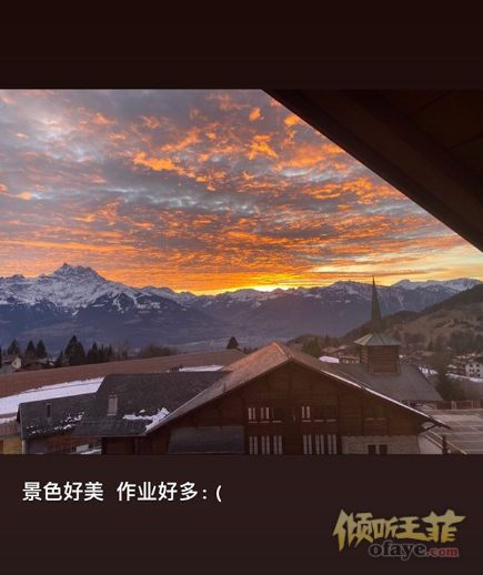 在个人社交网站晒出一张瑞士美景照,并配文:“景色好美,作业好多。”