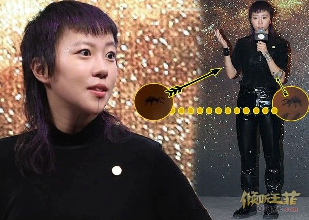 王菲相似。日前她穿上黑T恤、黑皮裤配黑鞋,在上海出席活动,本来的短发换成鲶鱼头,额头还长了刘海,在不经意中她还晒了新纹身,是一对分别在左、右手的蚂蚁。