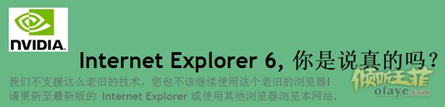 当你用IE6访问http://www.geforce.cn/,则直接跳转到这么一个noIE6的页面: