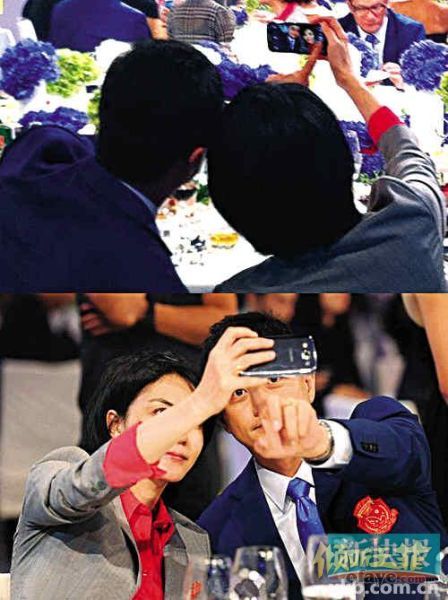 “鹏菲”在晚宴上玩自拍网友爆李亚鹏王菲亲密照李亚鹏、王菲夫妇日前在北京出席某慈善晚宴,两人穿着嫣然天使基金(微博)的工作服亮相,一身水泥灰色职业套裙、配红色衬衫的王菲看上去素雅、干练,一出场就瞬间秒杀了红毯上各种花枝招展的女明星。王菲也一如既往地惜字如金,一切需要开口的问题均交由李亚鹏代劳,她只是站在一旁笑而不语。