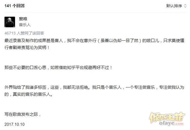 窦唯忽然现身网络,并回答了网友的问题,其称在筹备新作品,让网友们一时间相当惊喜,纷纷回复表示“难以置信遇见您”、“期待