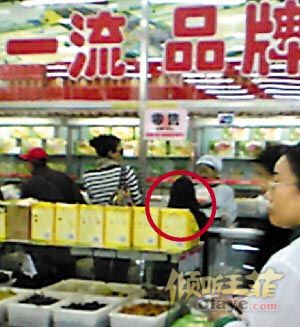 网友拍到的王菲带大女儿靖童(圈中所示)买零食的照片