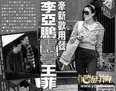 事件回顾上周,台湾某周刊封面刊登了李亚鹏和苗圃牵手的照片,直指李亚鹏和王菲的婚姻出现了问题。文中描述李亚鹏和苗圃因戏生情,“牵手私会,共享晚餐,席间俩人有说有笑,神情相当愉快,一见到其他客人,小两口的手又立刻放开,相当不自在……”照片画面模糊,似乎是为了表明它是深夜光线暗淡条件下拍摄的。