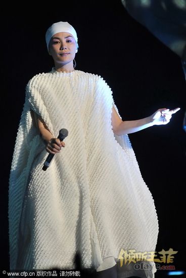 图文:王菲演唱会-王菲白色浴巾装