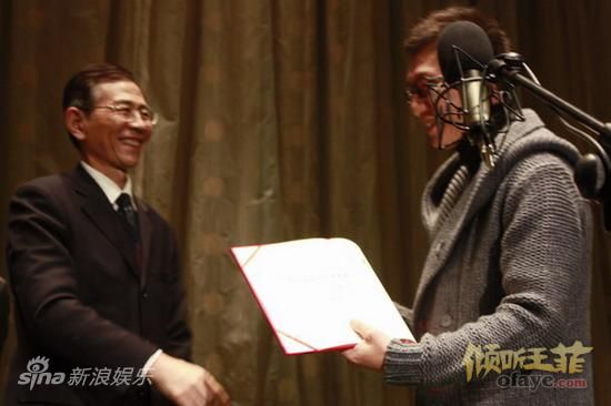 图文:郭德纲王菲做慈善-胡锦星为孙红雷颁证书