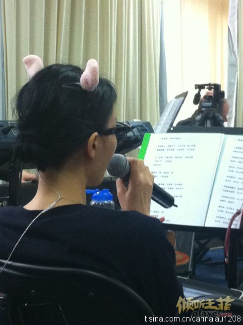 王菲彩排刘嘉玲探班 天后戴牛角发卡扮可爱(图)