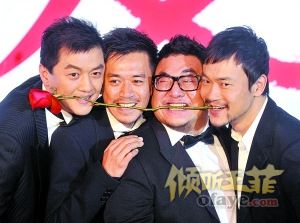 李亚鹏、王学兵、崔达治和廖凡同咬一枝玫瑰以表纪念。本报记者 郭延冰 摄 本报讯 (记者杨林)昨日,电影版《将爱情进行到底》(以下简称电影《将爱》)在京发布海报和预告片,李亚鹏、王学兵、崔达治、廖凡和导演张一白出席,还在国外度假的徐静蕾则是通过电话和几位男士交流。现场四位男士分别念出自己写的微情书,李亚鹏写给王菲的被称最浪漫。当记者问李亚鹏“一号立井”是不是他的微博,他笑说“这我怎么回答你啊”,王学兵一旁帮腔:“说出来就不浪漫了”,但李亚鹏还是承认微博这种传播方式很新鲜,自己也在玩。据悉,电影《将爱》将于明年情人节期间上映。