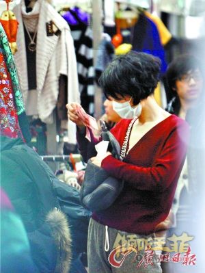 日前记者意外在某个服装市场发现了天后王菲悠闲逛街的身影。
