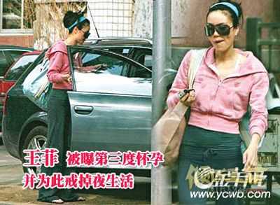 5月11日,香港某周刊于北京发现已近半年没有露面的王菲独自离开位于市郊的豪宅,身穿运动服的她身形明显比以前丰满,小腹位置隆起。据悉,李亚鹏一直希望要个儿子,38岁的王菲于是积极练瑜伽健身,还戒绝泡吧,调理好身体,全力造人。该消息称,王菲很可能已三度怀孕。