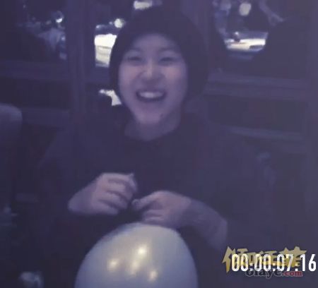 窦靖童吹开一个气球,然后故意用“电子娃娃音”说“I LOVE YOU”,逗得妈妈