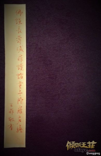 新浪娱乐讯 据香港媒体报道,虔诚佛教徒王菲在微博上载一本经书封面,上面写有“王菲敬书”的字样,留言:“等印出来跟大家结缘,阿弥陀佛。”似是王菲提笔写“佛偈”,准备与各信众分享学佛心得。见王菲写得一手优雅字体,一班网友即纷纷留言大赞。