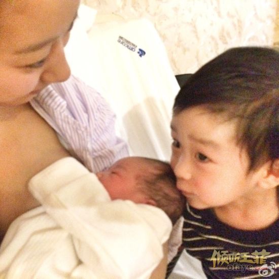 微博也晒出了黄觉老婆怀抱婴儿喂奶和大儿子的合影,照片看上去非常的幸福。