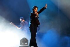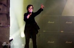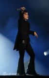 主唱桃乐丝宝刀未老主唱桃乐丝尽管已踏入不惑之年,但她在台上的活跃程度却丝毫不减当年。开场时她身穿黑西装配喇叭裤的复古造型帅气十足,中间阶段她戴上了羽毛头冠,玩起了印第安扮相。唱到《dying in the sun》时,桃乐丝更是被自己感动,忍不住泪洒当场。而返场时她身穿白色吊带小礼服大秀美背高唱《Dreams》时,歌迷们更是被深深倾倒。
