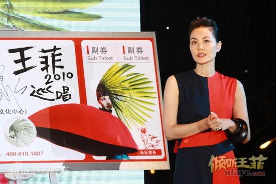 新浪娱乐讯 8月19日下午,“王菲2010巡唱”发布会在北京举行,经纪人陈家瑛到场助阵。期间王菲以红黑拼色长裙配透明拖鞋造型惊艳亮相,遭主持人大佐不断追问购票秘诀。