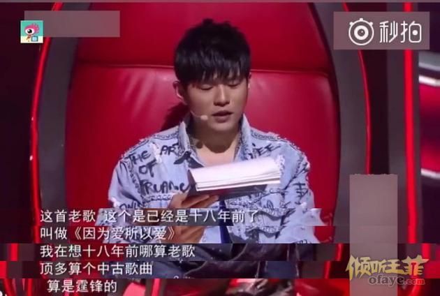 在《中国好声音》点歌环节中,周杰伦点歌谢霆锋《因为爱所以爱》时说道:“这首老歌,已经是十八年前了。”