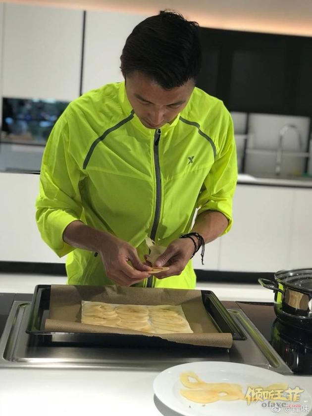 谢霆锋25日下午在微博晒出一组正在做甜点的图,配文:“