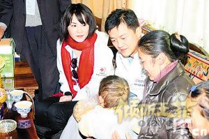 鹏菲探望兔唇儿童