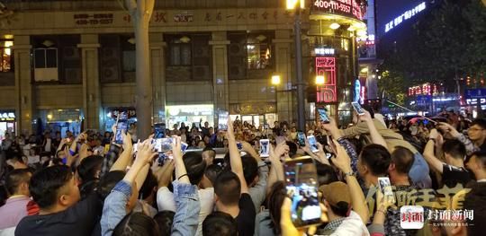 张靓颖离开火锅店时,大门刚一打开,只见围在外头等候已久的粉丝突然涌来,争相举起手机对准两位拍照、拍视频。粉丝们一边把两人团团围挤在人群中,一边大喊:“