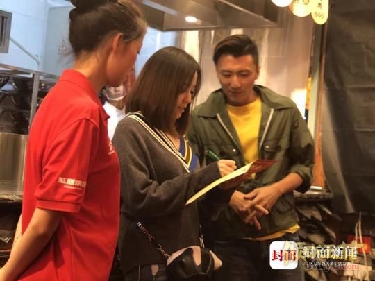 封面新闻记者到现场釆访,粉丝们把火锅店挤得水泄不通。店老板廖健身穿红色T恤,喜气洋洋。廖健和