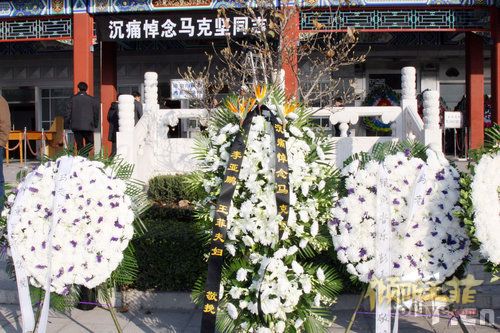 新浪娱乐讯 北京时间2008年11月19日,李亚鹏( blog)经纪人马葭(blog)父亲、中国足坛元老级人物马克坚追悼会在北京举行,体育和娱乐界的多名人士参加了该会。王菲( 听歌)李亚鹏夫妇、那英(听歌)送花圈致哀思。其中那英由于避见前夫高峰(),未能到场。