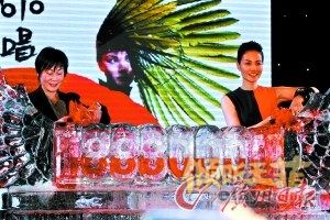 发布会现场王菲往冰雕里灌酒。