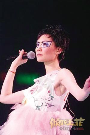 除了头饰,王菲在发型、眼妆和服装上一直以来也无所不尽其极。蓬松的超细波浪卷发、坚挺直立的辫子、干练的短发,蝴蝶妆、晒伤妆、不规则眼妆、水晶眼泪妆……王菲的每一次亮相,都带给人视觉上的时尚冲击,而她平时在生活中的装束,也在随意间透出时尚感。