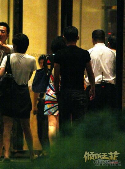 汽车停好后首先下车的是王菲和李亚鹏夫妇,当天王菲穿着一件漂亮时尚的花裙子,显得特别年轻艳丽,他们在景岗山( 听歌 blog)、马葭(blog)夫妇的陪同下一起走进了歌厅,进门时王菲还特意回头张望了一下,好像是看看好友刘嘉玲是否跟了上来。胡军下车后看见王菲李亚鹏打了招呼并没有跟他们一起进入歌厅,而是站在歌厅门前等候刘嘉玲的到来,他的表情平静中露出一丝喜色,当他看见刘嘉玲下车后连忙迎了上去,当天刘嘉玲穿了一件黑色暗花低胸裙,装扮雍容大方,看见胡军后刘嘉玲微笑着说了两句话,胡军也笑着点了点头,然后他们在助理的陪同下一起走进歌厅。当晚王菲包下了歌厅四层所有豪华的包房,其他客人都不能到该楼层的消费。大约在十点半左右那英(听歌)的路虎汽车也来到了歌厅门前,下车的正是那英和老公孟先生,多日不见的那英穿着一件绿色的旗袍,身材似乎又有些发福了,最近媒体报道说那英近一段时间一直在加拿大旅游度假,没想到实际上她已经悄然回国了。