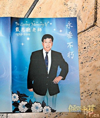 新浪娱乐讯 音乐老师戴思聪于7月18日不治离世,8月3日于香港殡仪馆为其设灵。出席戴思聪丧礼的人士都获赠一本戴老师的纪念册,纪念册以蓝白色为主,并饰以不同的音符。
