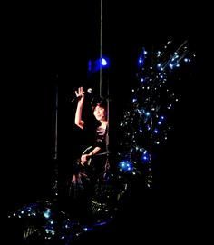 王菲坐在吊椅上,缓缓飘移到观众席的上空,宛如一个长着晶莹羽翼的天使,在银河上飞过。这不仅是当晚演出的最高潮,也是王菲距离观众最近的一刻。此时,全场观众不约而同大合唱,乘风而来的王菲,在合唱中陶醉的歌迷,满天的“繁星”,天籁般的歌声,构成了当晚最浪漫唯美的一幕。