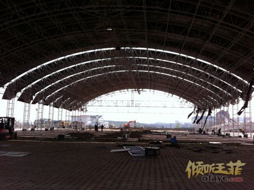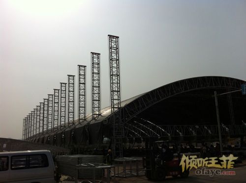 距演出还有十天新浪娱乐讯 5月12日、13日就要在金石滩唱响的王菲巡唱2012大连站,距今天还有十天的时间,而专门为天后演唱会搭建的演出大棚,已经在金石滩紧锣密鼓的搭建了一周时间了,距金石滩轻轨站约300米远的大棚搭建现场有近200位工人在紧张的忙碌着,现场感受到的震撼真是叹为观止,演唱会标准做到如此程度当世恐怕也只有王菲能够做到。