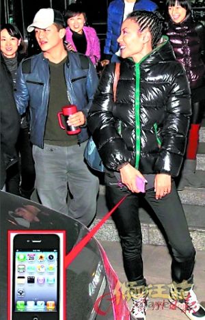 透过邻近大街的餐厅玻璃窗纱帘,看得出王菲心情亢奋地比手画脚,还不时站起来敬酒,身穿黑衣的她聊得兴起突然站起身走到旁边拿包,从包包中拿出她的iPad,不知是不是更新自己的微博。(鱼)