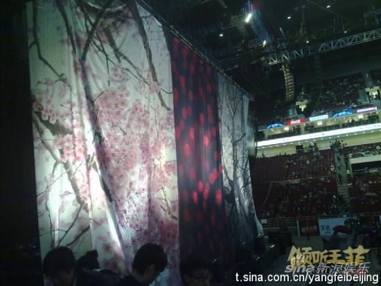新浪娱乐讯 北京时间10月29日晚20时,王菲“2010巡演”首站即将在北京五棵松体育馆揭开神秘面纱。图为舞台用布遮着 。
