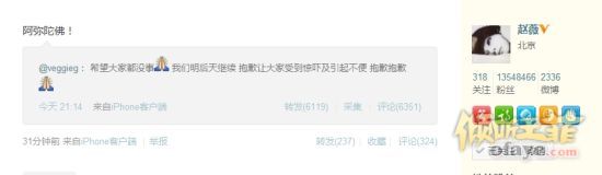 王菲微博向歌迷致歉