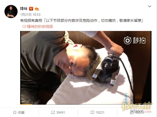 谢霆锋不好好在偶像剧、电影里耍帅,跑到家里自己用熨斗熨起了头发!顶着酷炫超高山鸡头的他还不忘贴心标注:“以下节目部分内容涉及危险动作,切勿模仿,敬请家长留意。”