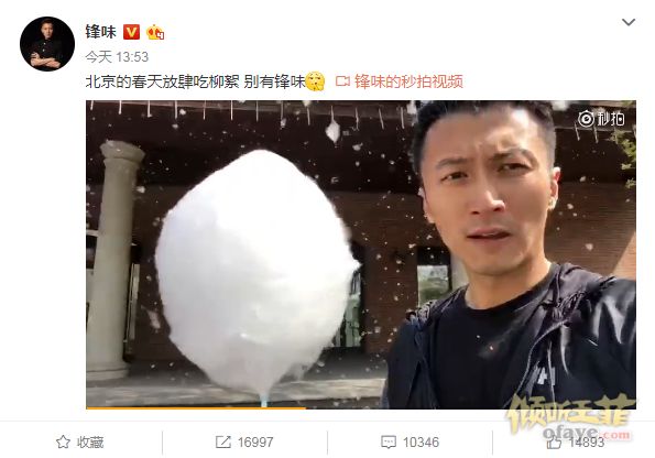 谢霆锋为此拍了一个小视频,表示:“我出来走了5分钟,你看,棉花糖都成了。”还调皮地真拿出一个棉花糖,咬了一口又呸地吐掉,作呛嗓子状。该微博一经发出,转发量、点赞量就迅速破万,随后更一举登上热搜高位。