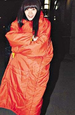 穿上橙色羽绒褛的王菲,昨日独自驾车到发型屋扮靓