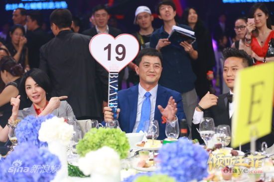 新浪娱乐讯 9月1日晚,2012芭莎明星慈善夜在北京798举行,成龙 (微博) 、章子怡 (微博) 、黄晓明 (微博) 、邓超等明星到场助阵。图为王菲手指李亚鹏。