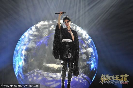 新浪娱乐讯 2011年7月2日, 王菲 长沙演唱会在湖南省国际会展中心上演。王菲天籁之音再现令歌迷陶醉,身穿白裙飘逸唯美,堪比女神下凡。图为黑衣登场。