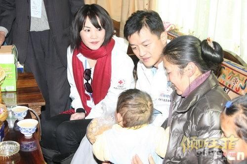 新浪娱乐讯 2008年11月28日,西藏拉萨,王菲(听歌)、李亚鹏(blog)夫妇到当地的定点医院探望第2008位接受治疗的唇颚裂儿童,并给他赠送了礼物,场面温馨。