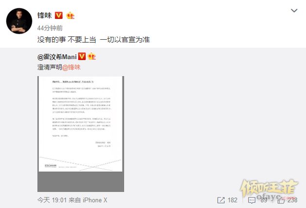 稍后,在同一天的晚间,谢霆锋转发此声明,并回应道:“没有的事,不要上当,一切以官宣为准!”(我是弥尔)