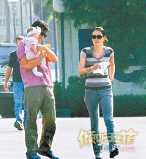 十一月中,李亚鹏(blog)(左)抱着李嫣和王菲一起在美国街头散步。