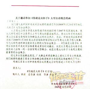 央视发出的邀请函