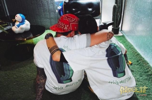 曾与窦靖童传过绯闻的歌手蔡智光晒出两人亲密合影,两人都穿着印有新专辑名称的T恤,互相搂着肩膀。
