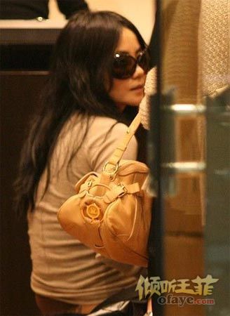 图文:王菲上海"扫货" 低腰裤不慎露"锋菲恋"纹身(3)