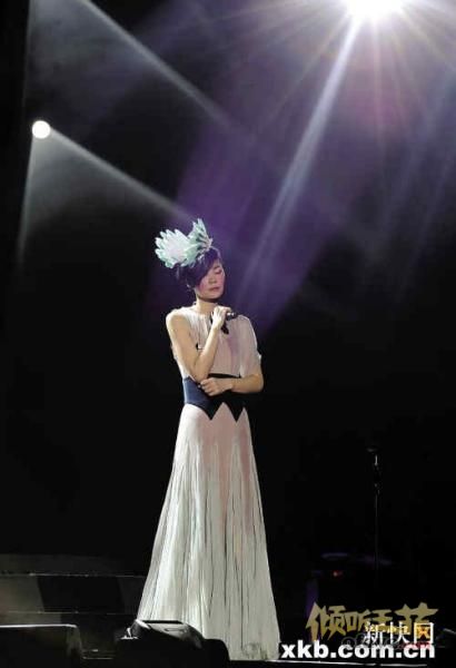 当演绎《天空》一曲时,化身凤凰的她乘坐飞鸟与观众近距离接触,又不断向热情的观众挥手,不少观众站起来拍下唯美一刻。畏高的她表现镇定,但飞鸟停顿期间有些摇晃,台下歌迷立即担心地大叫:“坐稳啊。”