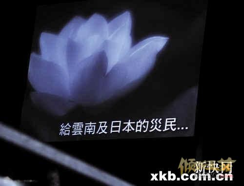 中国云南及日本相继发生大地震,尤以日本的灾情最严重,令见者心酸。3月11日晚,王菲在香港的演唱会最后一场作出特别安排,播出加长版的《心经》,并在大屏幕放上一张白视频:王菲演唱会唱《心经》为灾区祈福媒体来源:新浪娱乐莲花照片,写着“给云南及日本灾民”的字样,为地震灾民祈福。
